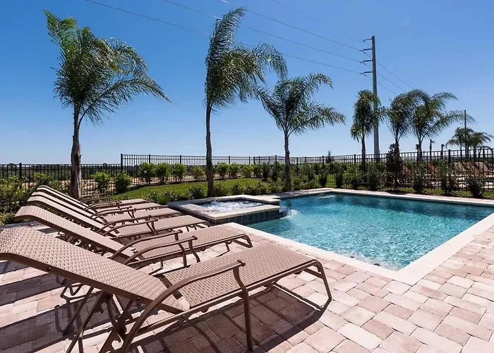 A acomodação de Orlando disponibiliza comodidades auto-suficientes, tais como cozinha totalmente equipada e zona de refeições para conveniência dos hóspedes. Também pode utilizar refrigerador, forno e utensílios de cozinha para preparar a sua própria refeição. A Charming 10 Bdrm Villa With Open Living Area At Encore também fica a 36 minutos de carro do aeroporto em Orlando Internacional.